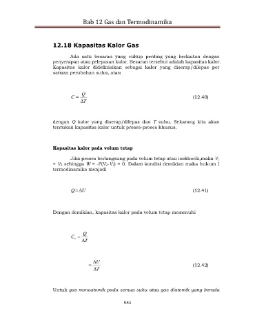 Untuk gas monoatomik pada semua suhu atau gas diatomik yang berada