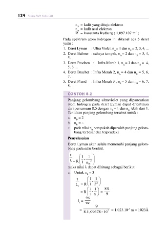 1. Deret Lyman : Ultra Violet, n = 1 dan n = 2, 3, 4, ...
