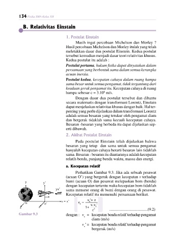 Gambar 9.3 dengan : v = kecepatan benda relatif terhadap pengamat
