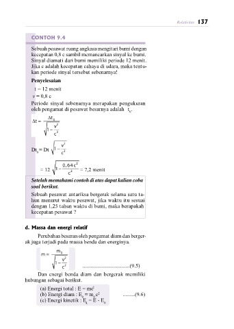 (b) Energi diam : E = m c 2 .........(9.6)