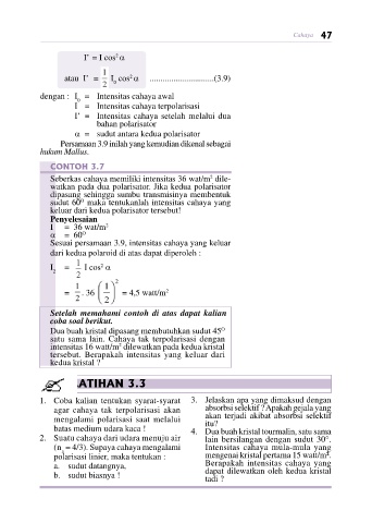 Sesuai persamaan 3.9, intensitas cahaya yang keluar