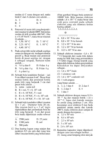 D. E = 6. 10 N/C, V = 6. 10 volt 14. Sebuah elektron dengan massa 9,11x