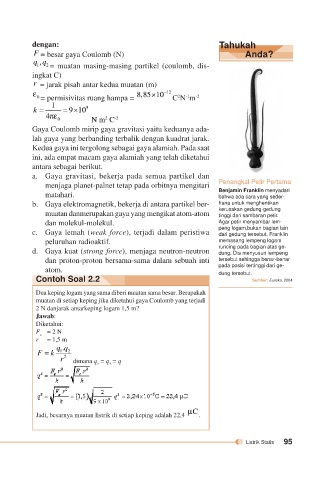 1 2 = muatan masing-masing partikel (coulomb, dis-