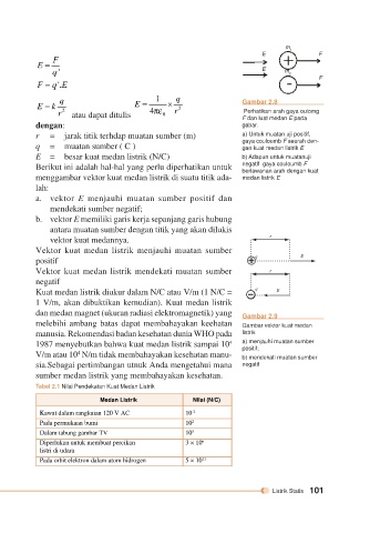 1987 menyebutkan bahwa kuat medan listrik sampai 10 a) menjauhi muatan sumber