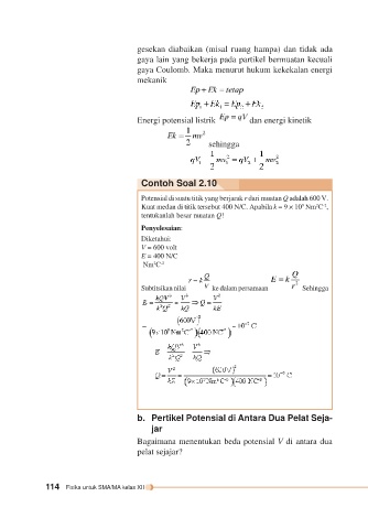gaya Coulomb. Maka menurut hukum kekekalan energi