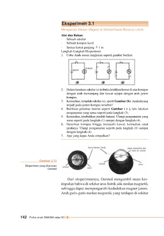 2. Dalam keadaan sakelar (s) terbuka,letakkan kawat di atas kompas