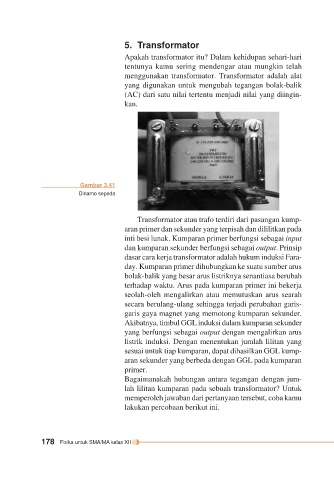 dan kumparan sekunder berfungsi sebagai output. Prinsip