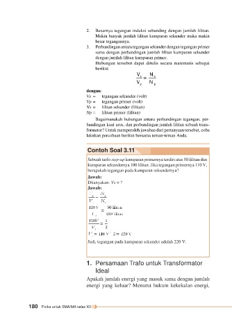sama dengan perbandingan jumlah lilitan kumparan sekunder