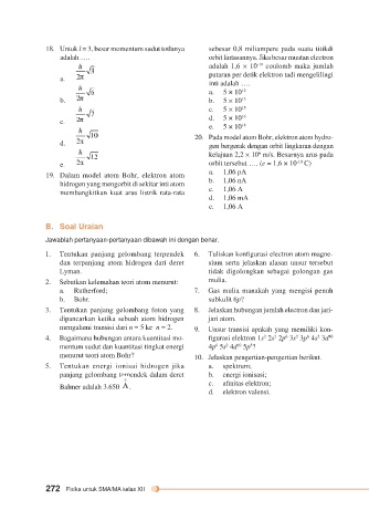 18. Untuk l = 3, besar momentum sudut totlanya sebesar 0,8 miliampere pada suatu titikdi