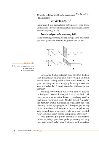 jukkan terjadinya polarisasi pada gelombang tali yang