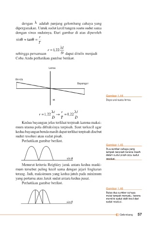 sudut resolusi atau sudut pisah.