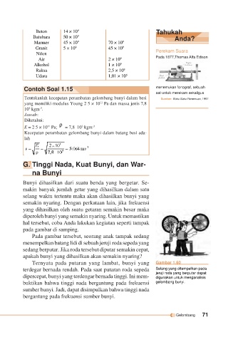 Tentukanlah kecepatan perambatan gelombang bunyi dalam besi Sumber: Buku Saku Penemuan, 1997