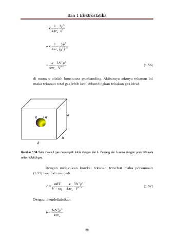 Gambar 1.54 Satu molekul gas menempati kubis dengan sisi h. Panjang sisi h sama dengan jarak rata-rata
