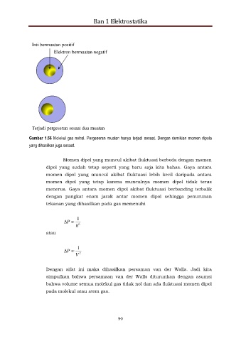 Gambar 1.56 Molekul gas netral. Pergeseran muatan hanya terjadi sesaat. Dengan demikian momen dipola