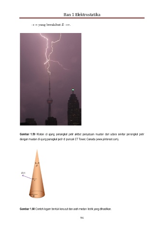 Gambar 1.60 Contoh logam bentuk kerucut dan arah medan listrik yang dihasilkan.