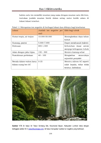 Tabel 1.3 Kerapatan ion negative di berbagai lokasi dan efeknya bagi kesehatan
