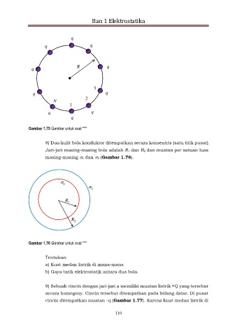 cincin ditempatkan muatan –q (Gambar 1.77). Karena kuat medan listrik di