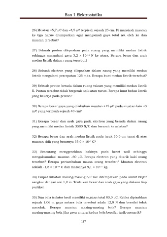 26) Muatan +5,7 C dan –3,5 C terpisah sejauh 25 cm. Di manakah muatan