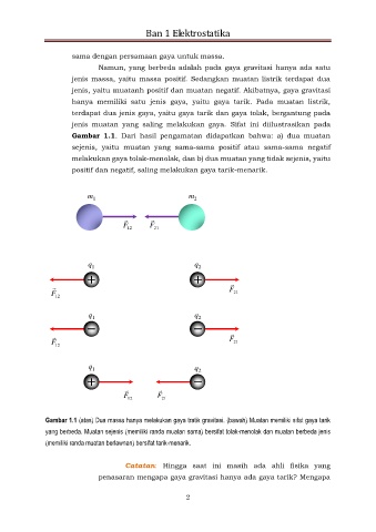 jenis, yaitu muatanh positif dan muatan negatif. Akibatnya, gaya gravitasi