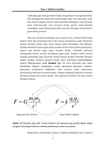 Gambar 1.2 Persamaan gaya listrik Coulumb diinspirasi oleh persamaan gaya gravitasi Newton dengan