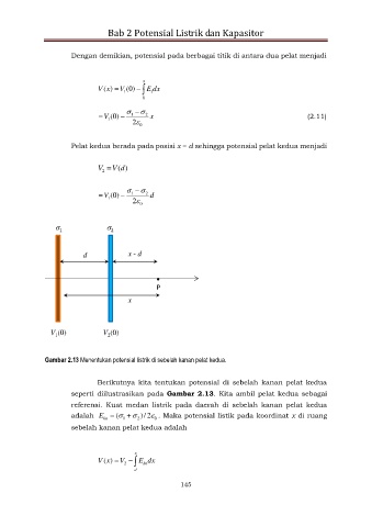 Dengan demikian, potensial pada berbagai titik di antara dua pelat menjadi