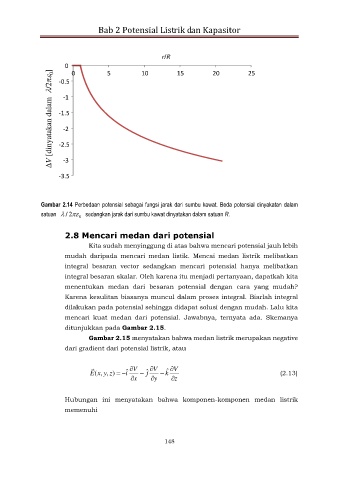 Gambar 2.14 Perbedaan potensial sebagai fungsi jarak dari sumbu kawat. Beda potensial dinyakatan dalam