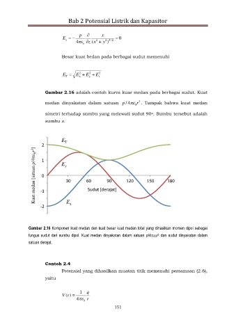 Gambar 2.16 Komponen kuat medan dan kuat besar kuat medan total yang dihasilkan momen dipol sebagai