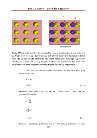 sebanding dengan medan listrik luar yang diterapkan. Akibat munculnya momen-momen dipol tersebut maka