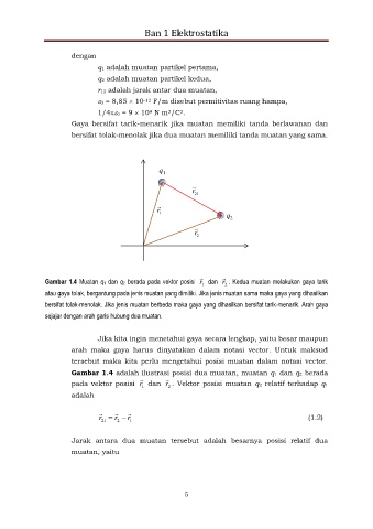 Gambar 1.4 adalah ilustrasi posisi dua muatan, muatan q1 dan q2 berada
