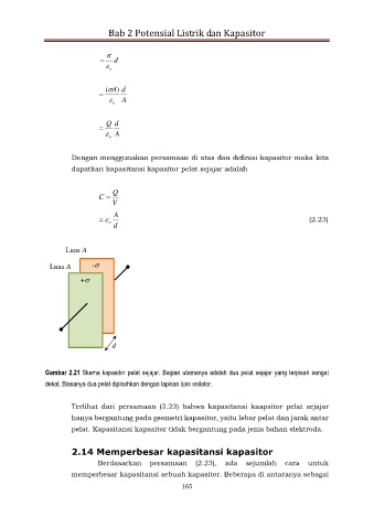 Terlihat dari persamaan (2.23) bahwa kapasitansi kaapsitor pelat sejajar
