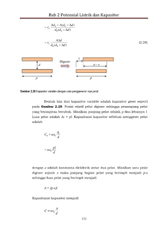 Luas pelat adalah A0 = pl. Kapasitansi kapasitor sebelum menggeser pelat