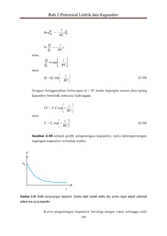 Gambar 2.40 adalah grafik pengosongan kapasitor, yaitu kebergantungan
