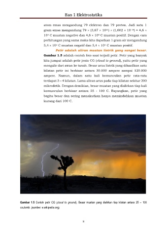 mengalir dari awan ke tanah. Besar arus listrik yang dihasilkan satu