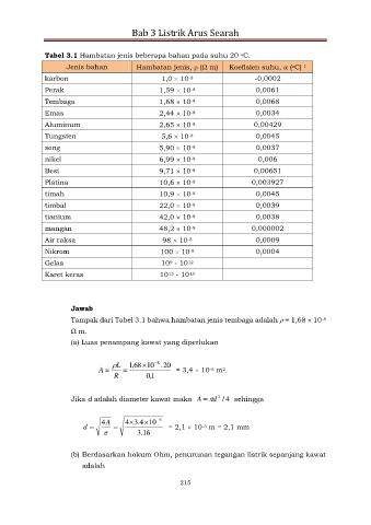 Tabel 3.1 Hambatan jenis beberapa bahan pada suhu 20 C.