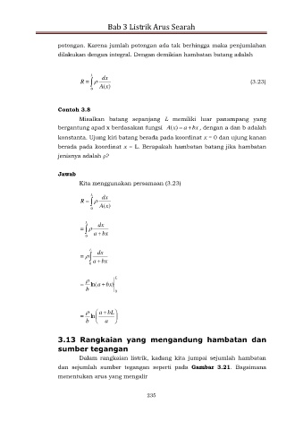 dilakukan dengan integral. Dengan demikian hambatan batang adalah