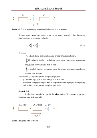 Gambar 3.21 Contoh rangkaian yang mengandung hambatan dan sumber tegangan