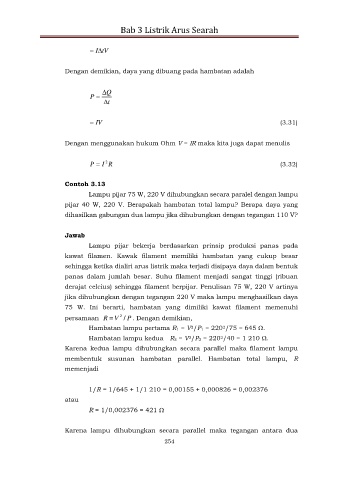 jika dihubungkan dengan tegangan 220 V maka lampu menghasilkan daya