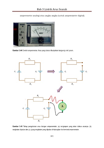 Gambar 3.44 Contoh amperemeter. Arus yang diukur ditunjukkan langsung oleh jarum.