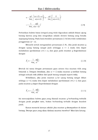 berjarak a. Dengan demikian, jika a >> L maka muatan q melihat batang