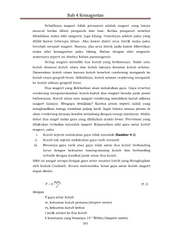i. Kutub sejenis melakukan gaya tolak-menolak (Gambar 4.1)