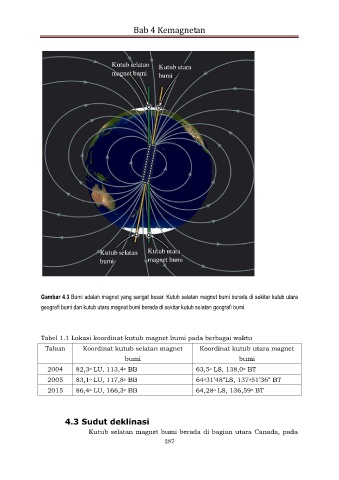 Tabel 1.1 Lokasi koordinat kutub magnet bumi pada berbagai waktu