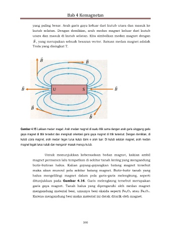 Gambar 4.15 Lukisan medan maget. Arah medan magnet di suatu titik sama dengan arah garis singgung garis