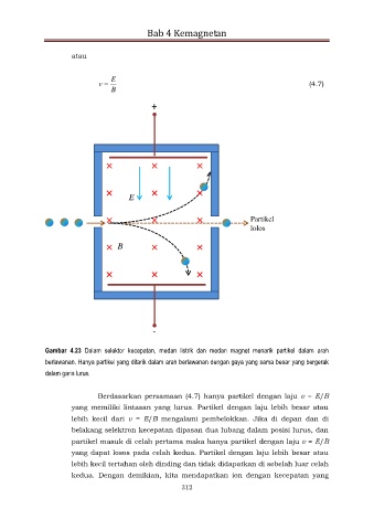 Berdasarkan persamaan (4.7) hanya partikel dengan laju v = E/B