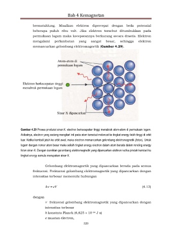 Gambar 4.29 Proses produksi sinar-X. electron berkecepatan tinggi menabrak atom-atom di permukaan logam.