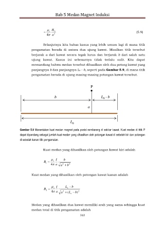 Gambar 5.9 Menentukan kuat medan magnet pada posisi sembarang di sekitar kawat. Kuat medan di titik P