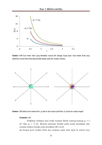 Gambar 1.18 Kuat medan listrik yang dihasilkan muatan titik sebagai fungsi jarak. Kuat medan listrik yang