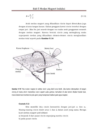 Gambar 5.16 Pola medan magnet di sekitar cincin yang dialiri arus listrik. Jika karton ditempatkan di tengah