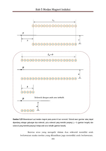 dipandang sebagai gabungan dua solenoid, yaitu solenoid yang memiliki panjang L0 + b (gambar tengah) dan