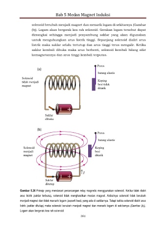 listrik (saklar ditutup) maka solenoid berubah menjadi magnet dan menarik logam di sekitarnya (Gambar (b)).