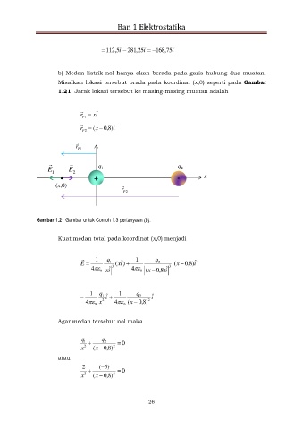 b) Medan listrik nol hanya akan berada pada garis hubung dua muatan.